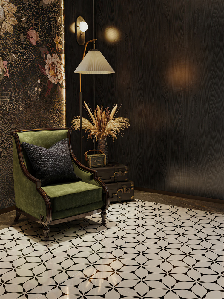 几何形构花态,“花影” 借虚实、刚柔,以秩序与留白,赋予空间艺术张力 。