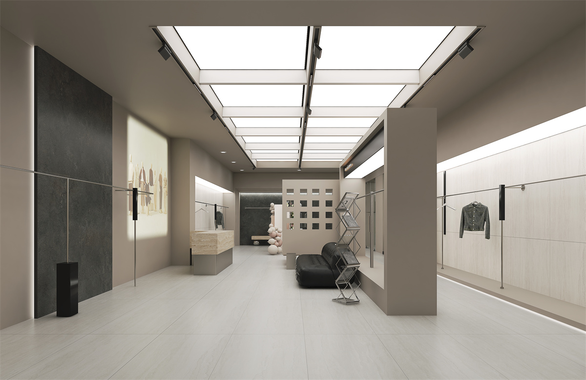 灵感源自被雨水浸润的河石,深浅不一的灰色纹理如雨滴滑过的痕迹,温润深邃。