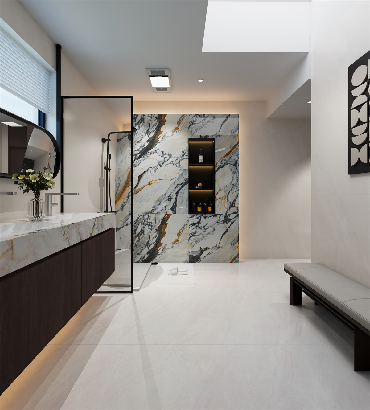 浅灰色的静谧基底如同破晓前的天空,白色纹理肆意流淌,充满自然张力与艺术感。