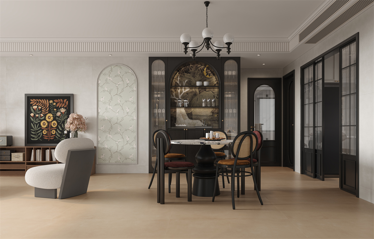浅灰枝影于米白底上蜿蜒伸展,缀以淡粉小花,以留白笔法勾勒出东方静谧意境。