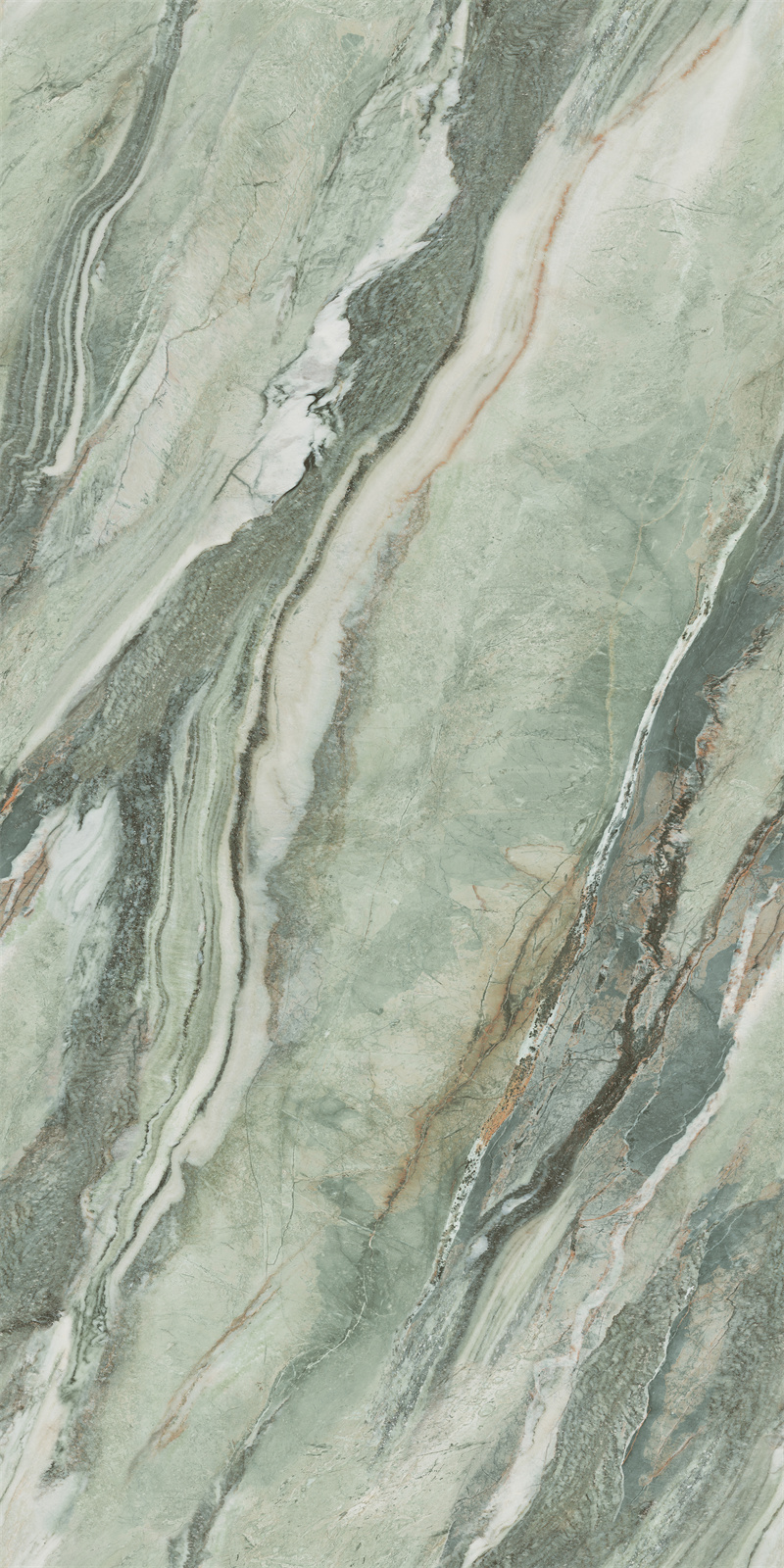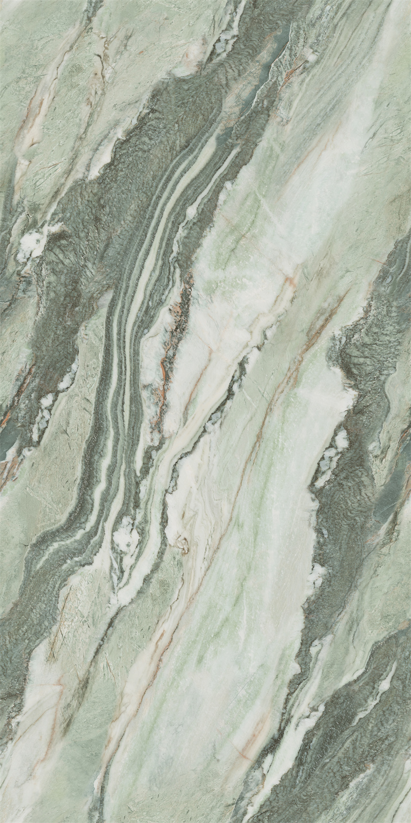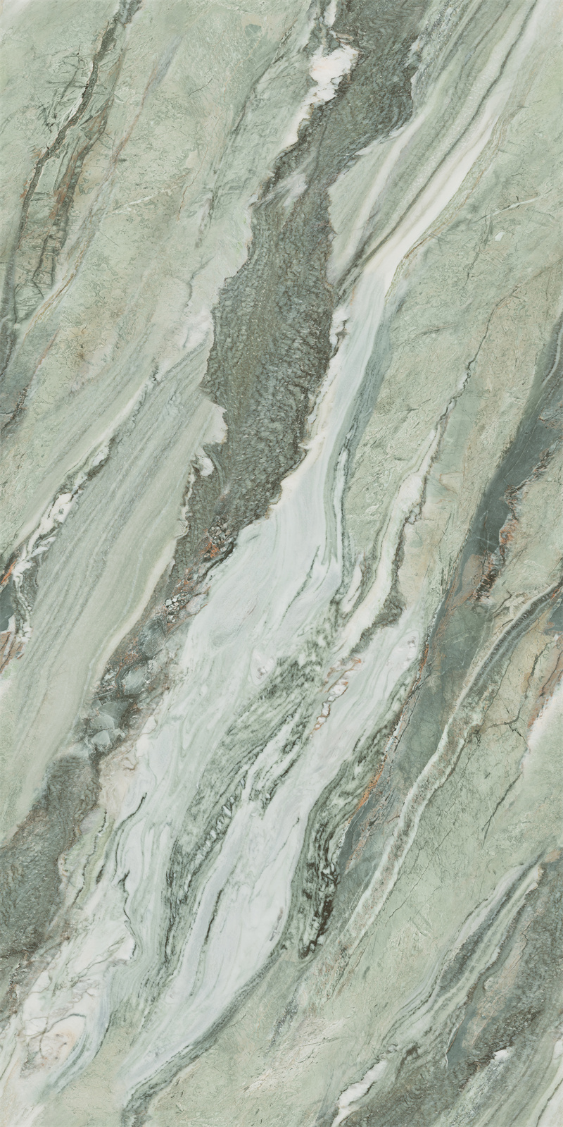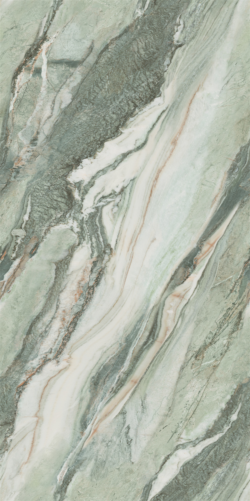 翠绿色带蜿蜒嵌入石中,构成一幅青山映水的立体画卷,传递盎然生机。