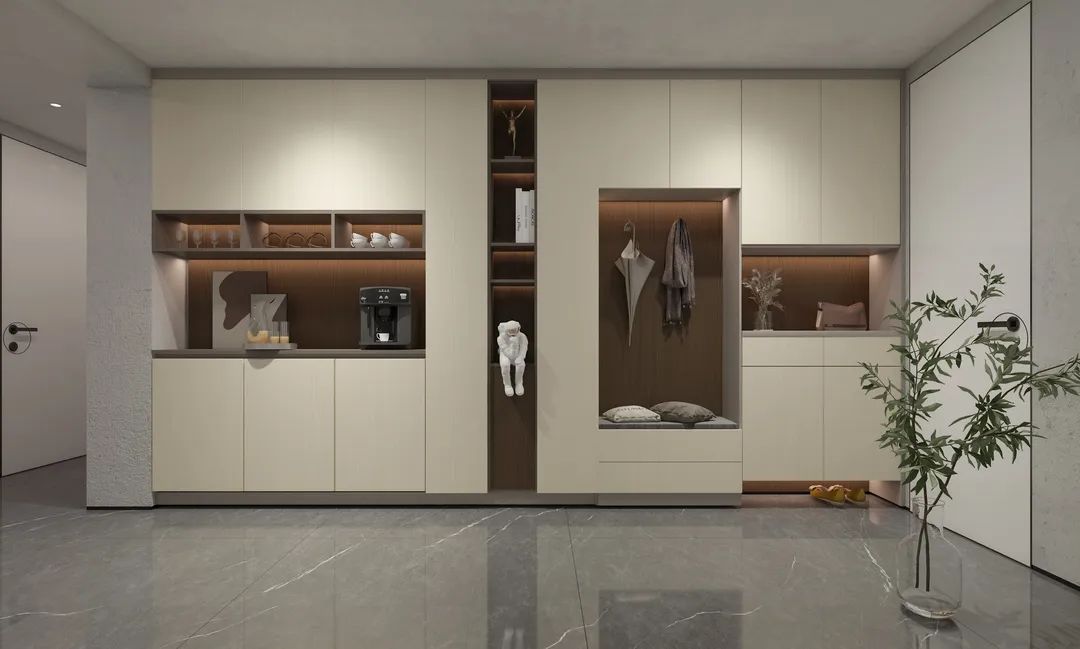 墙面,酒柜饰面,电视背景墙,烟灰咖原木色继承了缭绕的烟火气,也在高级感中修炼成时尚达人。