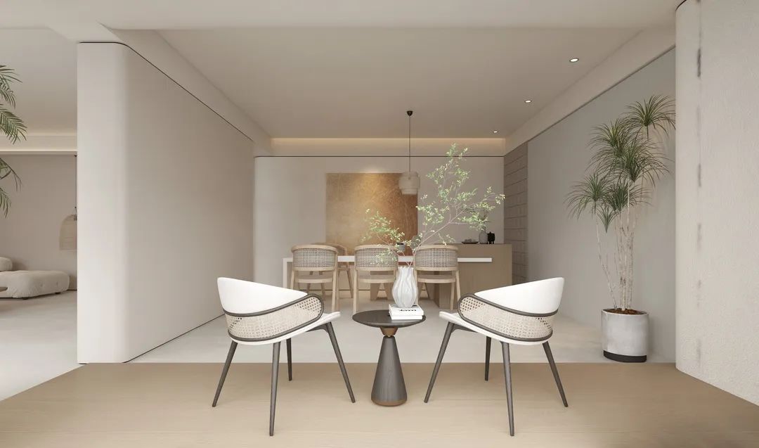 作用于客餐厨空间,古木逢春总有它的古色古香风貌。在水泥钢筋的现代城市中独辟一处怡然静思的空间,营造或安静,或专注,或陪伴的沉浸式氛围。