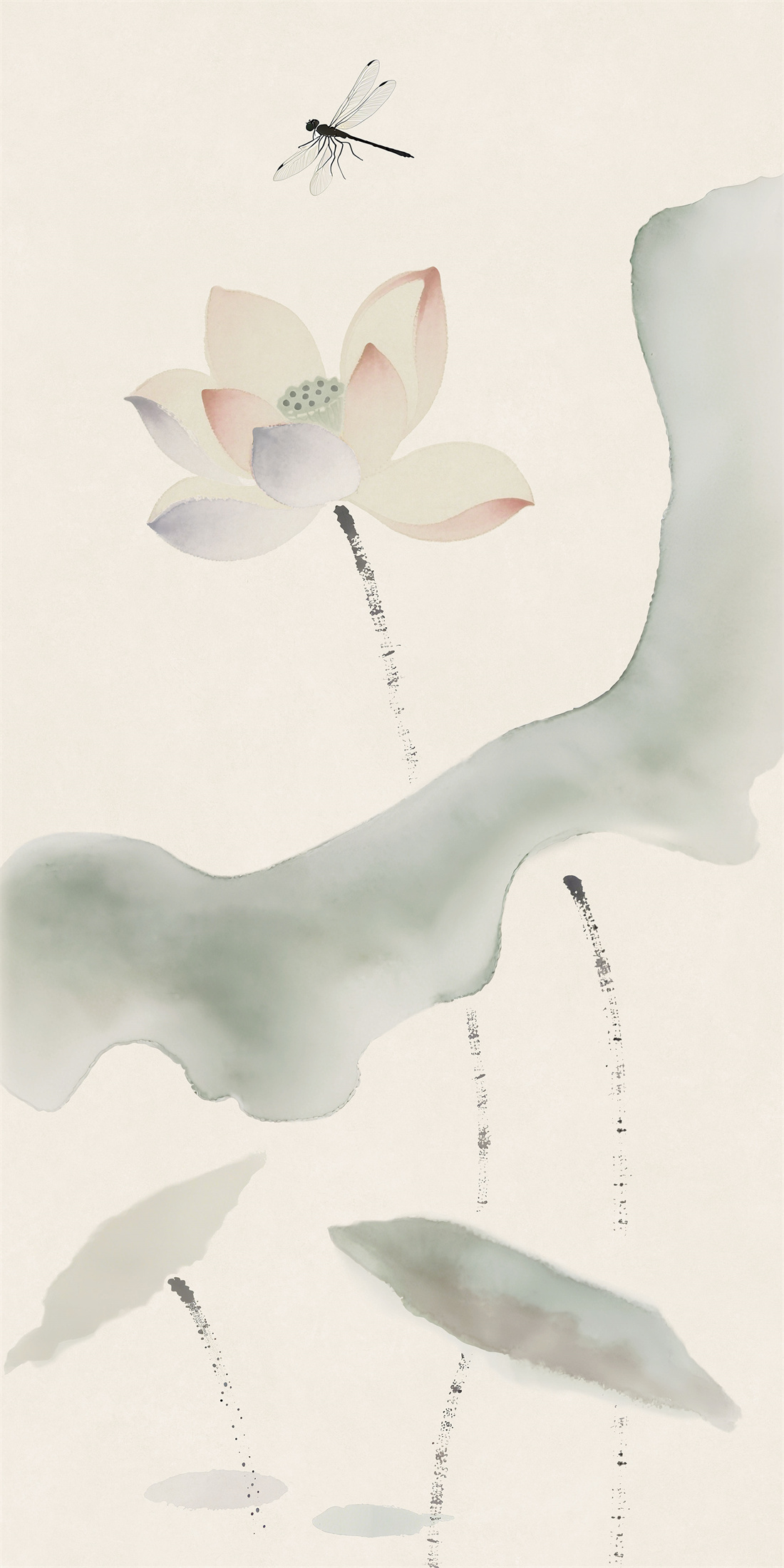 水墨氤氲勾勒荷花与蜻蜓,复刻中式复古笔触,定格雨后荷塘的清雅朦胧之美。