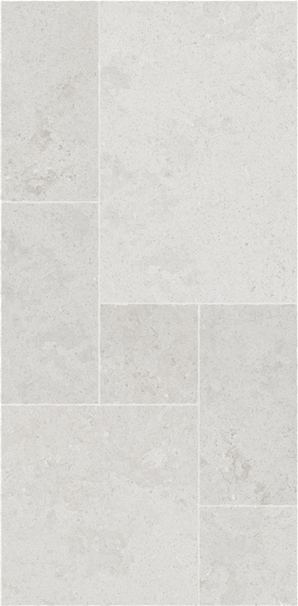 浅灰白基调如古堡石墙映照暖阳,哑光表面流转细腻石纹,微模法式拼贴勾勒错落韵律。