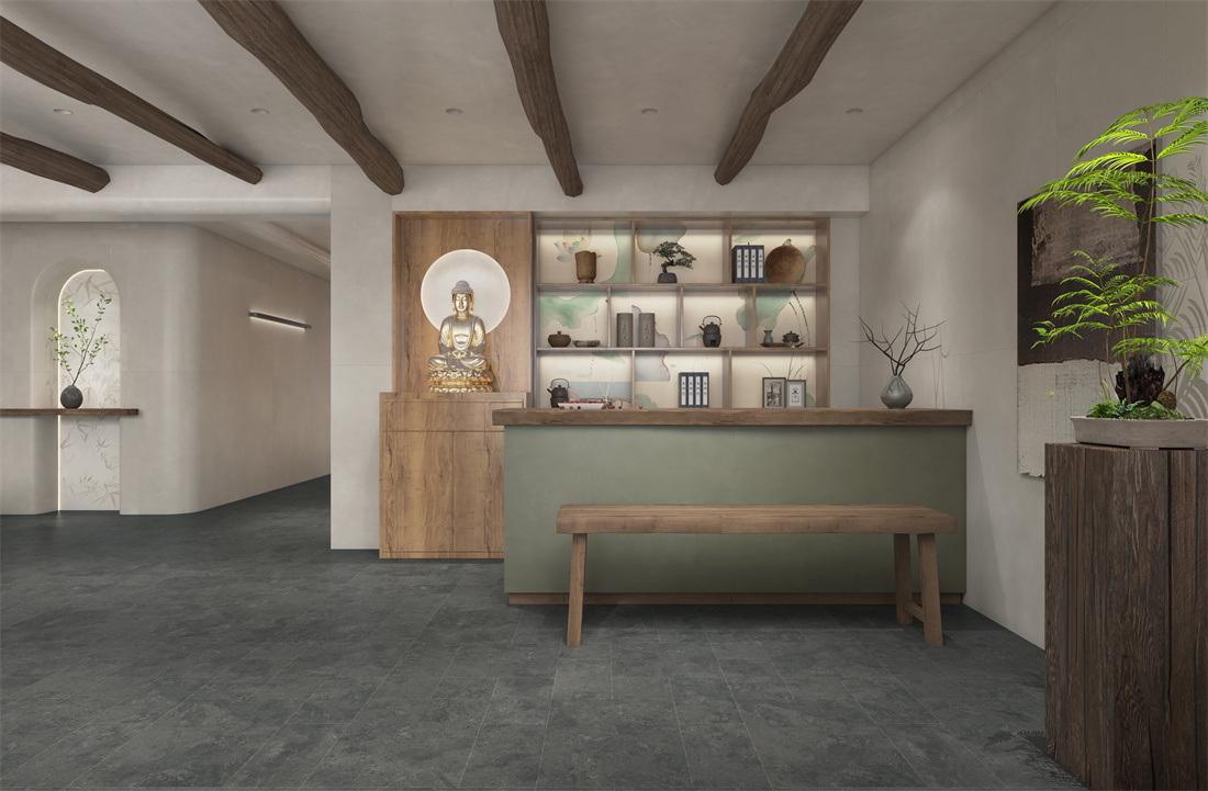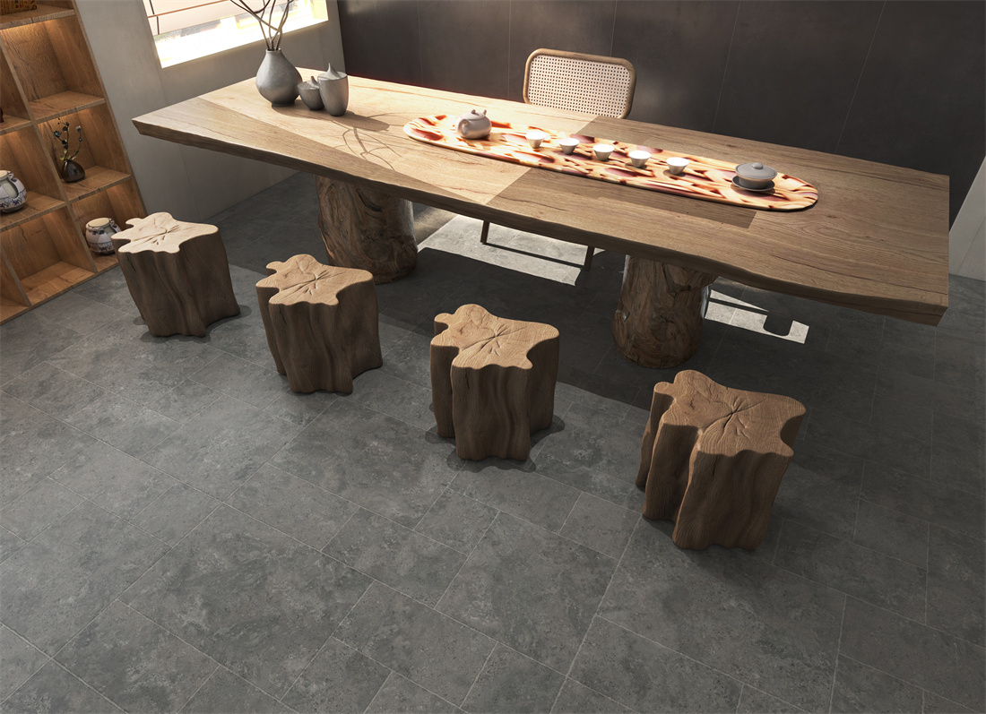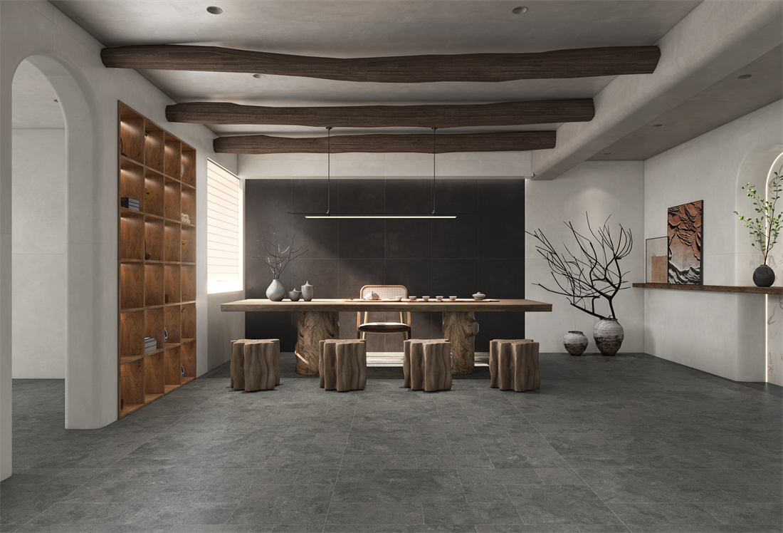 深灰色仿石质感,纹理深邃而富有变化。犹如雨后的巴黎石板路,营造出沉静内敛的现代空间。