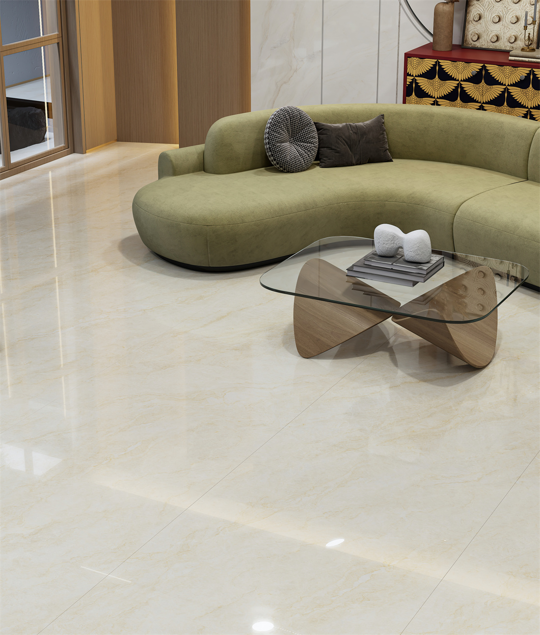 温润米色基底泛珍珠光泽,纹理如绫罗般细腻平滑,演绎内敛的奢华质感。