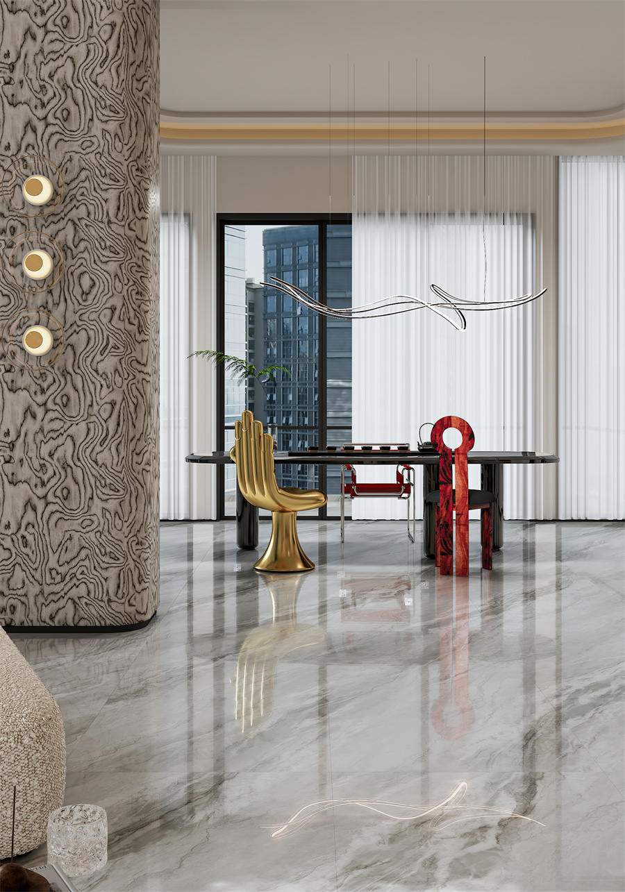 浅灰与白色交织,形成如流云似泉水的朦胧纹理,营造出如云水交融的画面感。
