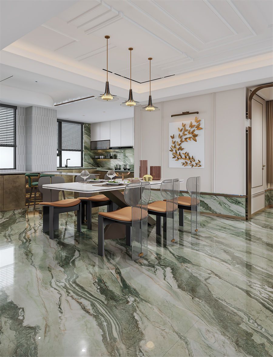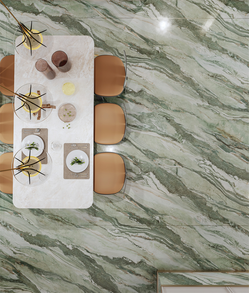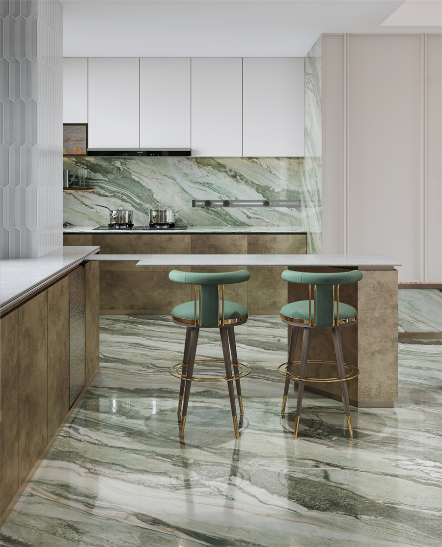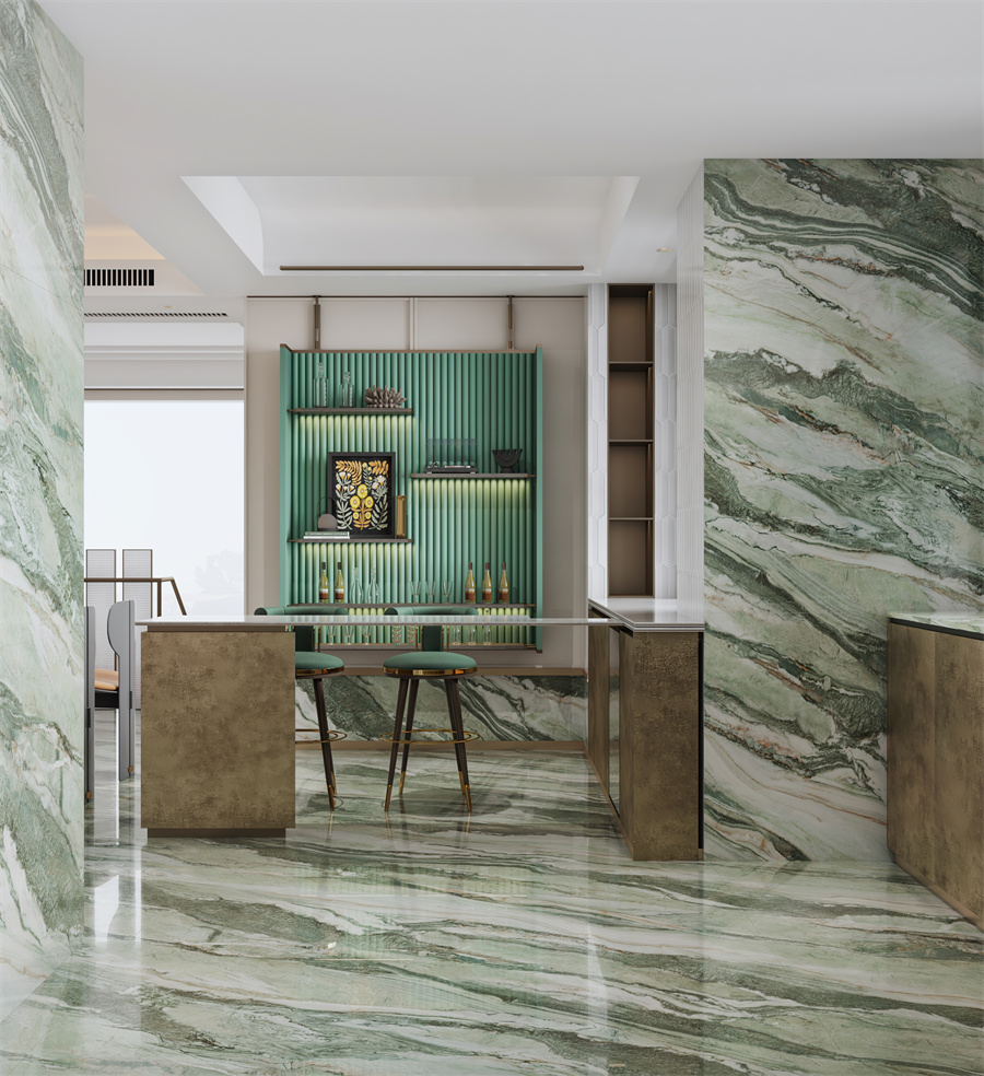 翠绿色带蜿蜒嵌入石中,构成一幅青山映水的立体画卷,传递盎然生机。