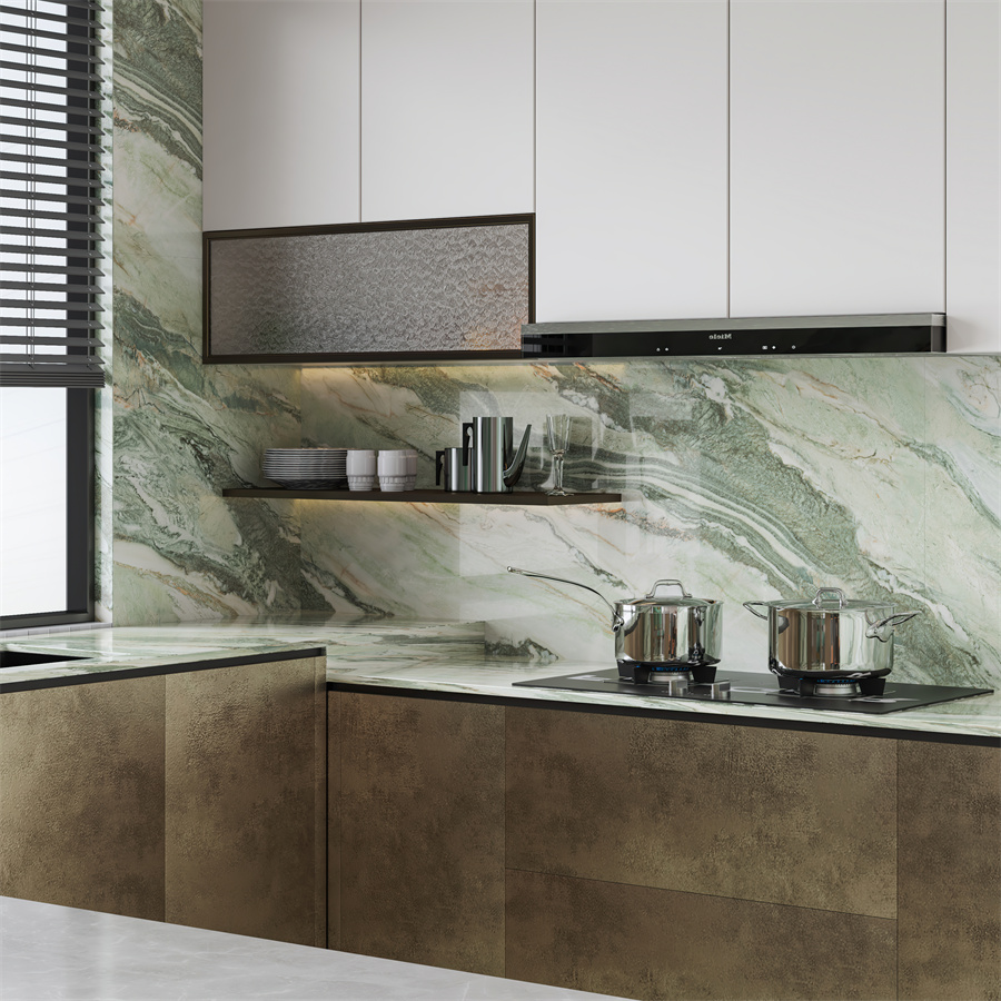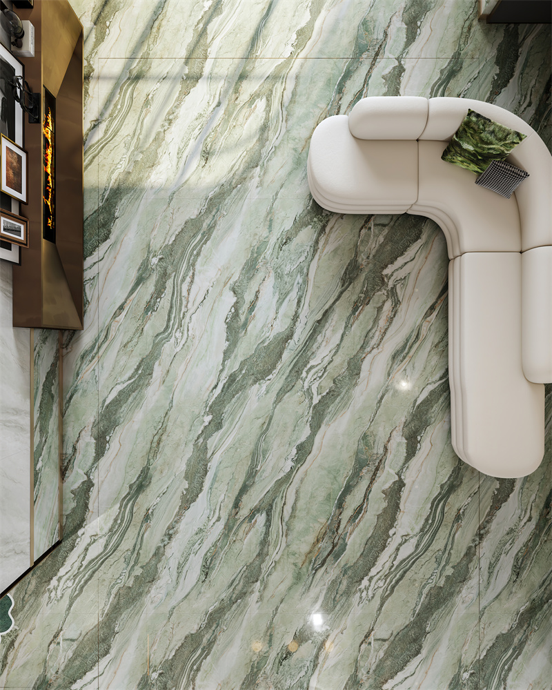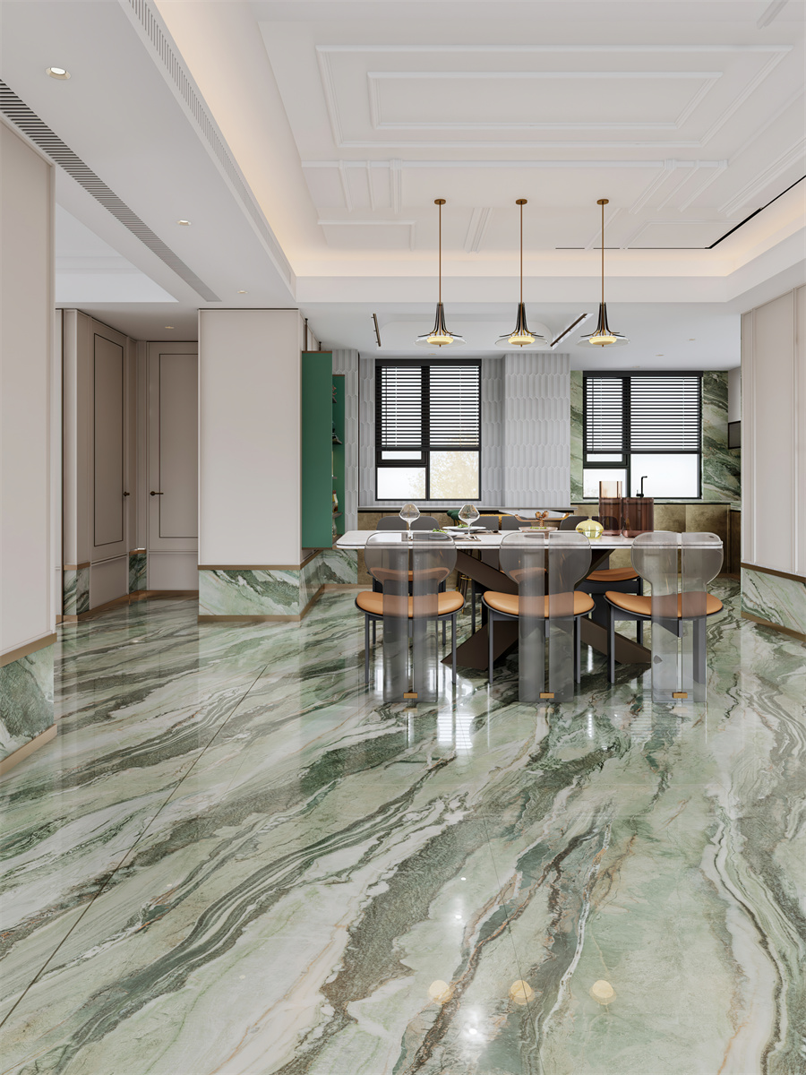 翠绿色带蜿蜒嵌入石中,构成一幅青山映水的立体画卷,传递盎然生机。